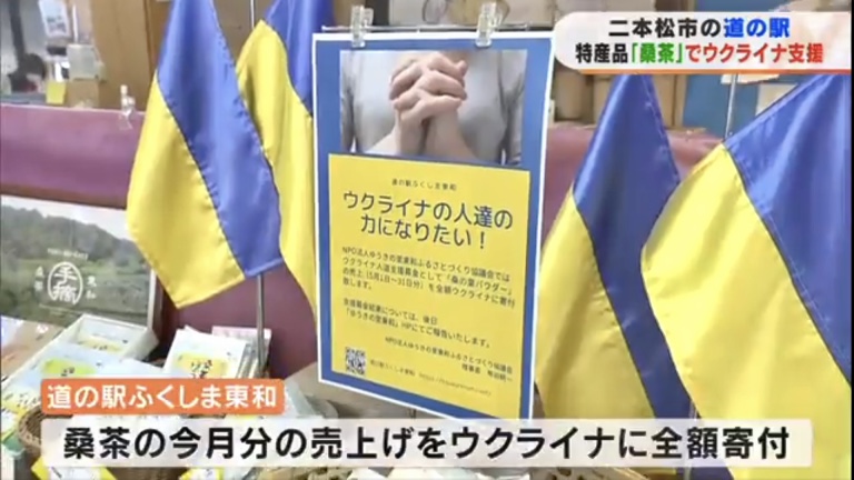 二本松市では現在、ウクライナからの避難民が生活していて、これをきっかけに道の駅では、この桑茶の今月分の売上げをウクライナに全額寄付することにしました。続きは → https://news.yahoo.co.jp/articles/84dd73115de6c763cbae516b8095c8e484972e72