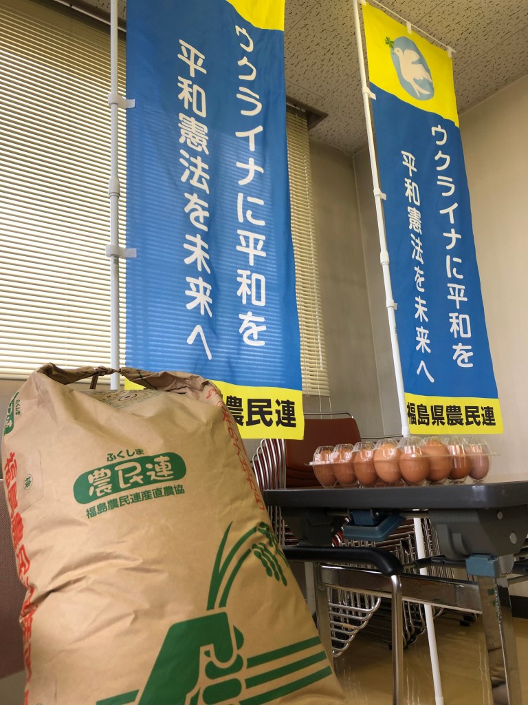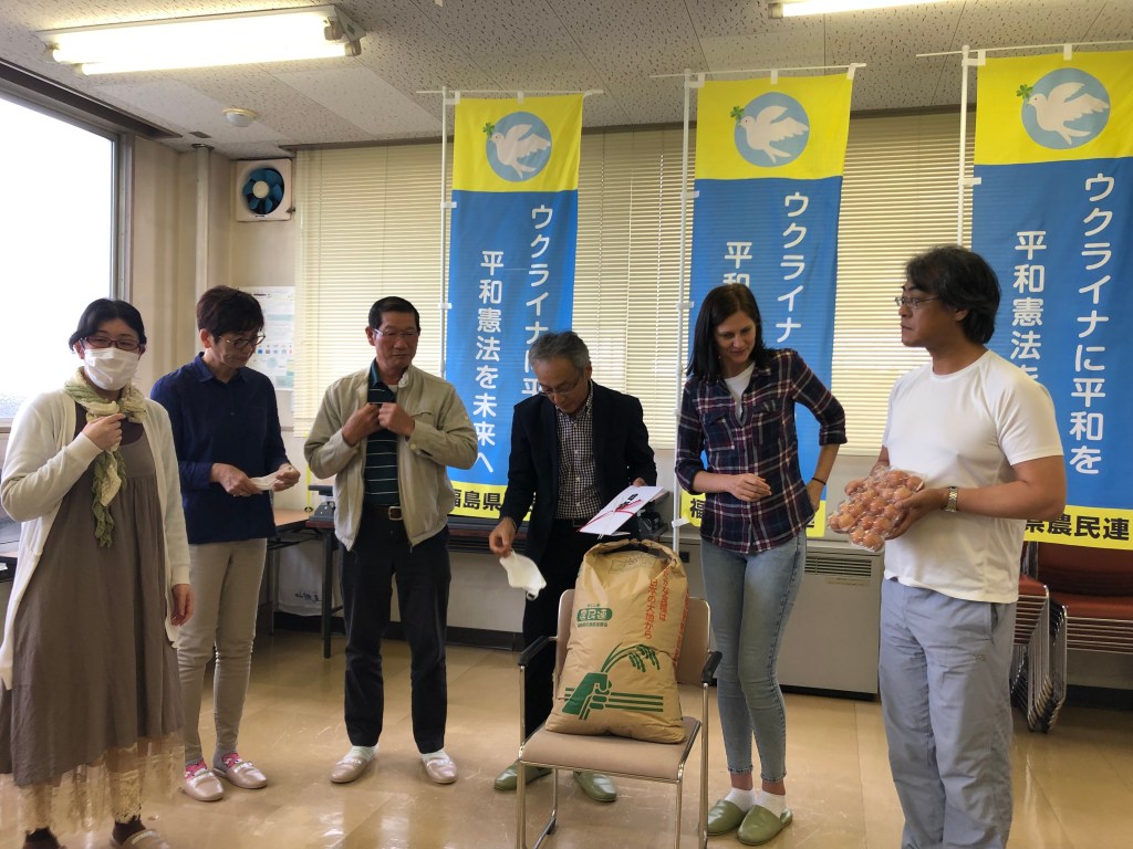 福島県農民連の皆さまからは「ウクライナ難民人道支援基金ふくしまキャンプ」に寄付金として五十三万一千三百三十七円、米30kg、卵などをいただきました。お金ももちろん大切ですが、毎日食べるお米は嬉しい支援物資です。
