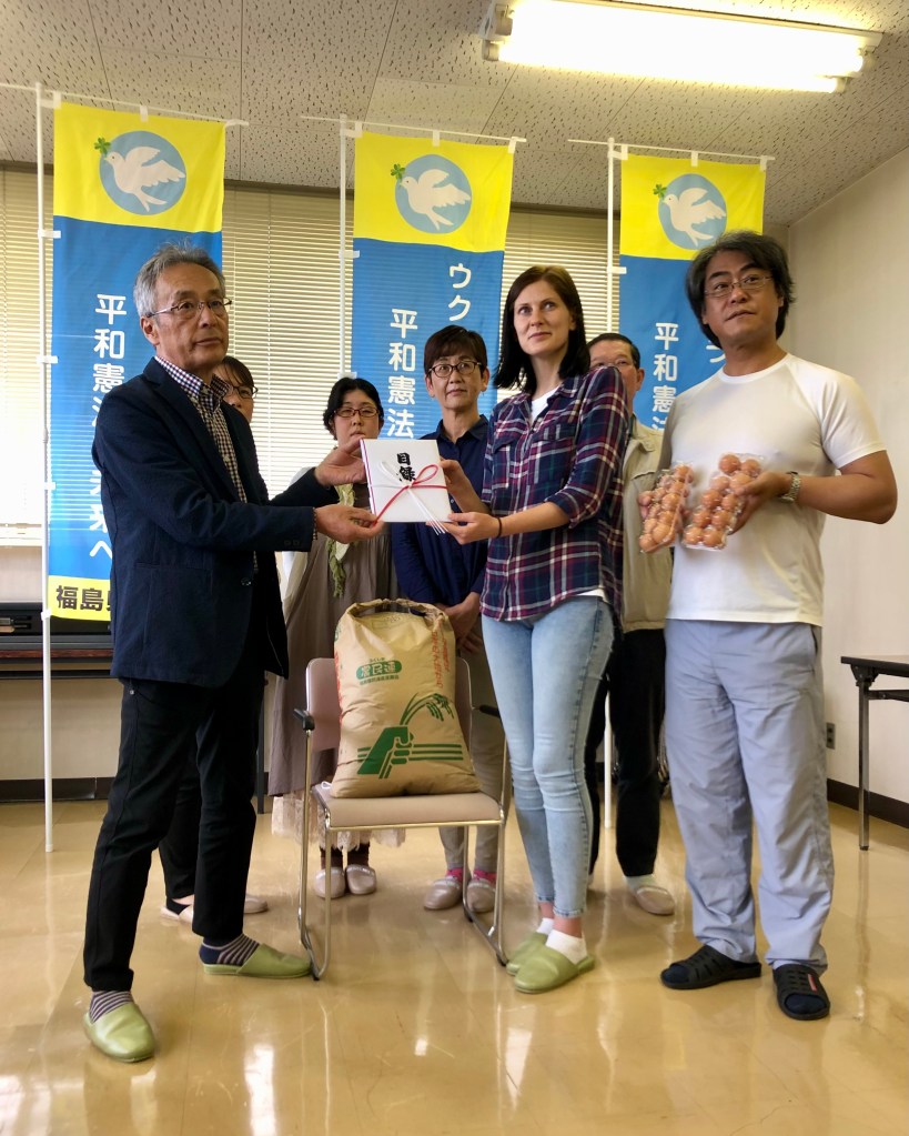 同会はウクライナ視察を通じて、代表の木村真三准教授と以前から親交がありました。寄付金は会員や、あだたら食農school farmから募っていただいたとの事です。オリガさんや次に来る避難者への生活支援、本国に残る人たちへの援助等、大切に使わせて頂きます。本当にありがとうございました。