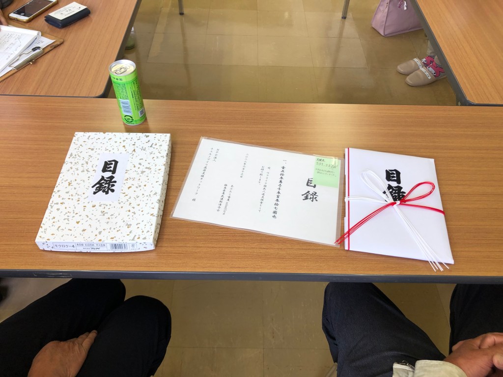 寄付金の贈呈式が行われ、根本 敬会長からオリガさんに目録と食料品が手渡されました。