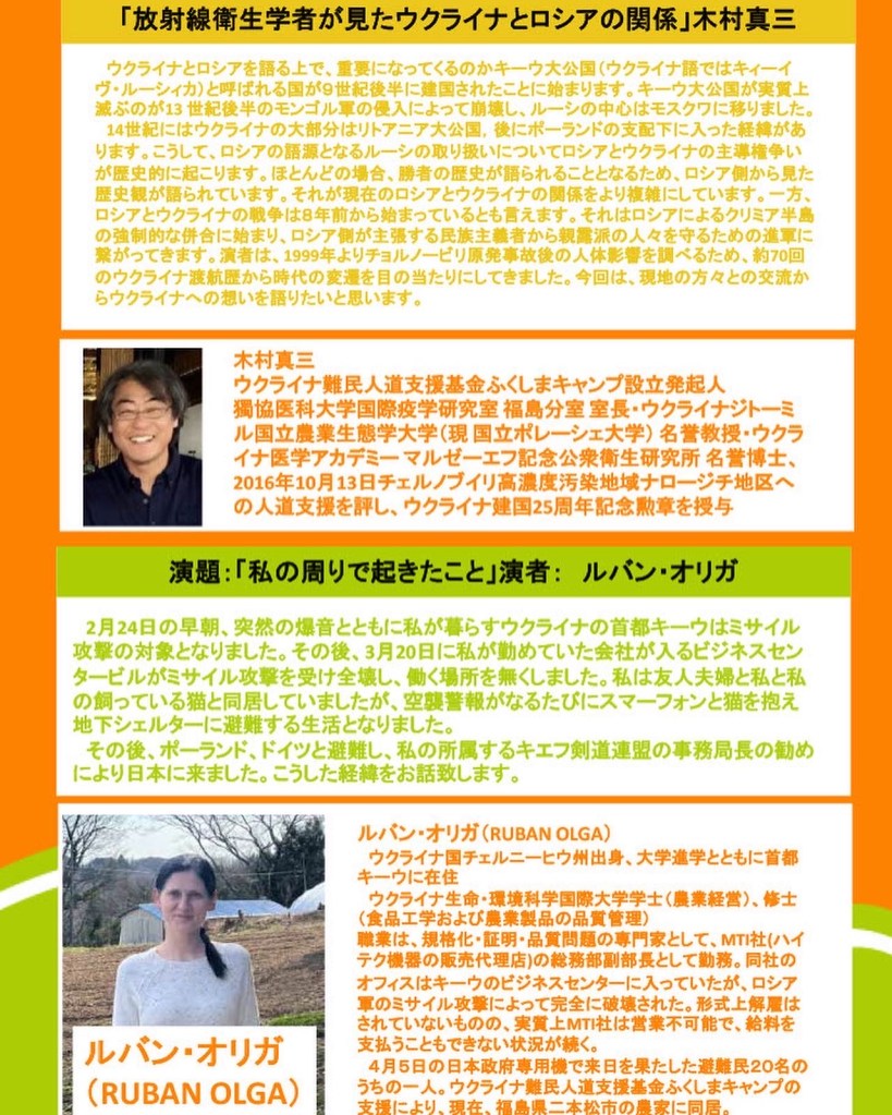 木村真三 と ウクライナ避難民 ルバン・オリガさん による、講演会 が開催されます。お近くにお住まいの方はお気軽にご参加ください。参加は無料です。