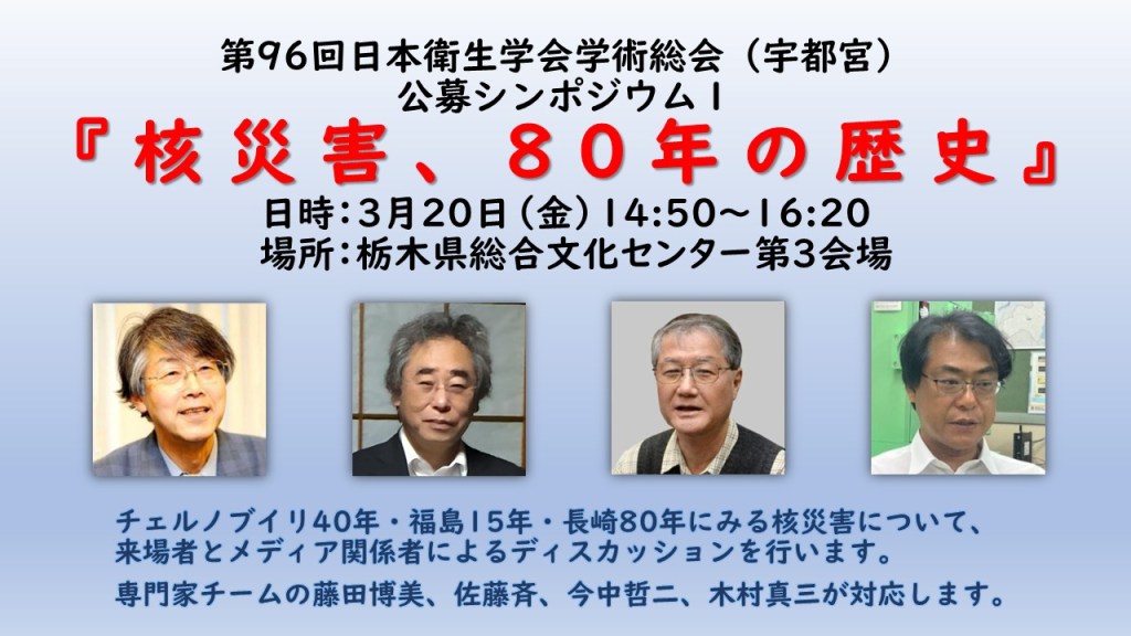3月20日(金)「第96回日本衛生学会学術総会」(宇都宮市) にて シンポジウム を開催いたします。